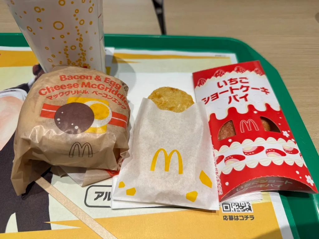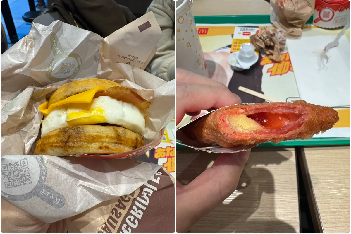 - McGriddles 厚鬆餅堡(台灣沒賣) — 培根起司蛋,有蜂蜜甜甜鹹鹹的