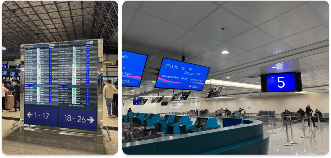 - 🛫 03/15 去程 CI130 : TPE 桃園國際機場 T2 08:35 (實際延誤 3 分鐘) -> CTS 北海道新千歲機場 13:15 (實際延誤 7 分鐘)