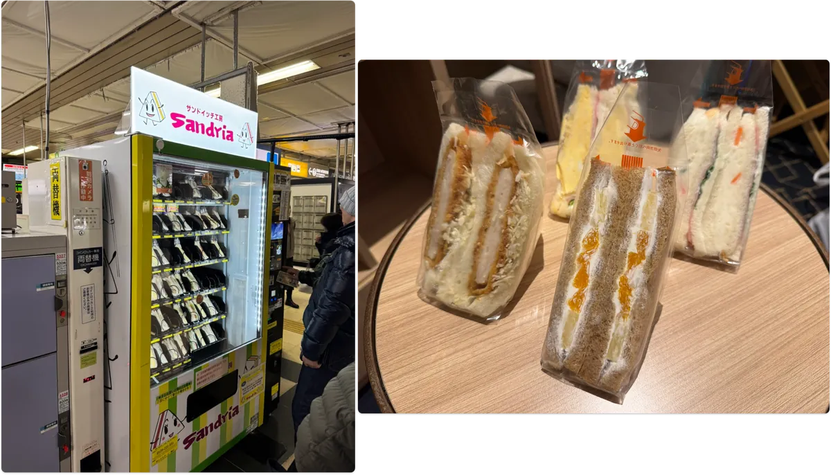 回飯店的路上買了每天經過 JR 車站都很多人都在排的三明治販賣機。