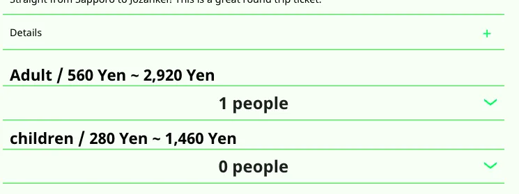 4.選擇 去程 的日期與班次(班次時間以札幌出發表示)