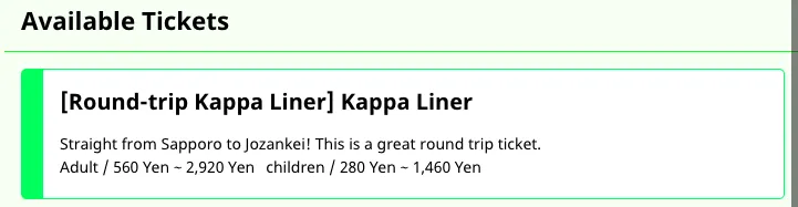 2.選擇購買 かっぱライナー号 / 卡帕內衣號 / Kappa Liner 來回 or 單程