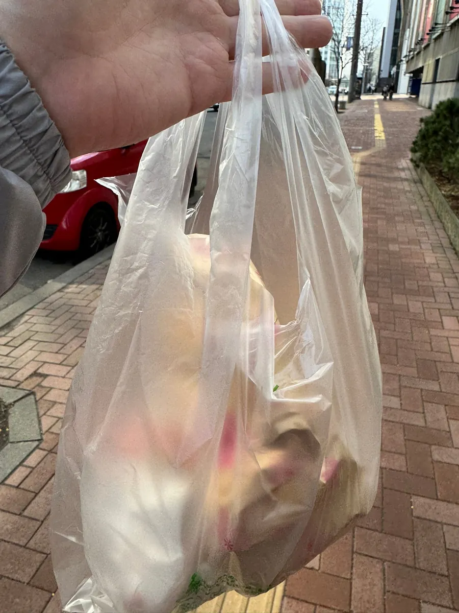 一人限購兩個,我買了一個豬排當宵夜、馬鈴薯蛋沙拉當明天早餐。