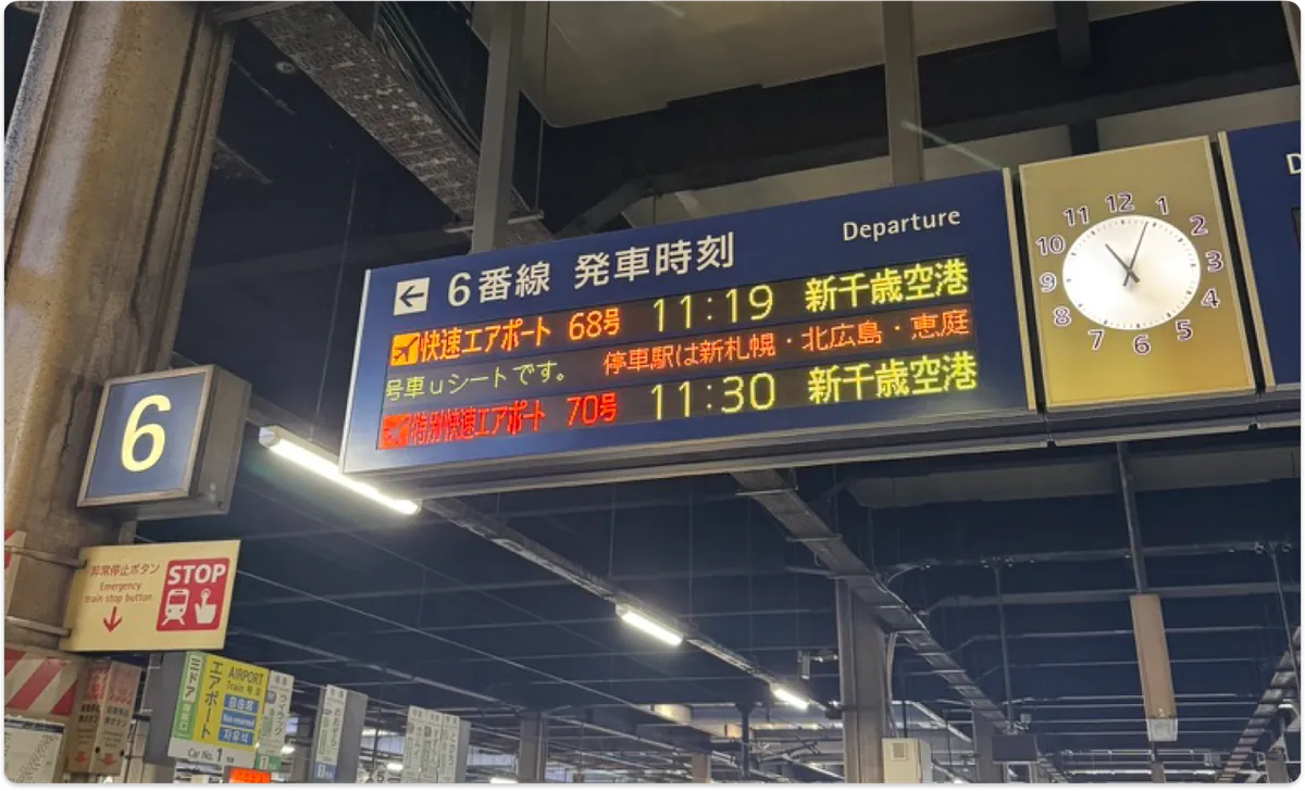 新千歲機場到札幌站的 JR 我看班次很多加上飛機落地時間抓不太準就沒先買票;前往定山溪溫泉只能搭乘巴士,根據 2025/12 最新交通資訊 ,有 3 種路線可以選擇: