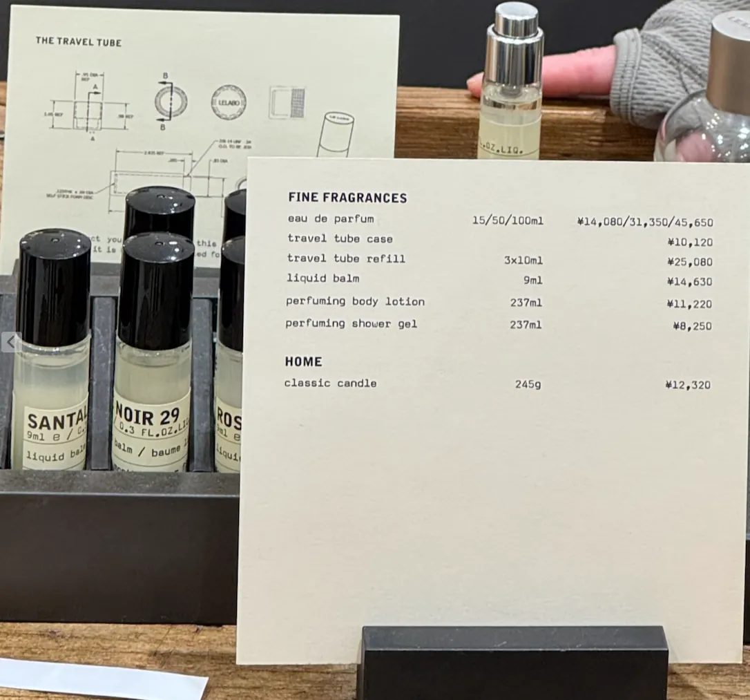順便瞄一眼 Le Labo 2026 / 札幌 買的價格: