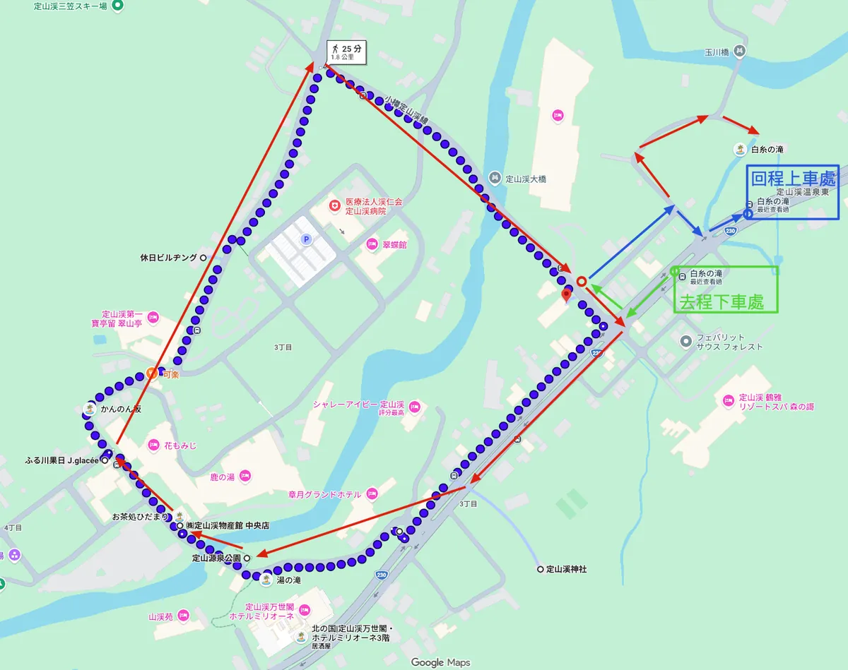 - 回程想說 11:00 Checkout 後在溫泉街走一走再回去,所以訂 13:15 發車 (白絲瀑布 13:31 上車)的班次