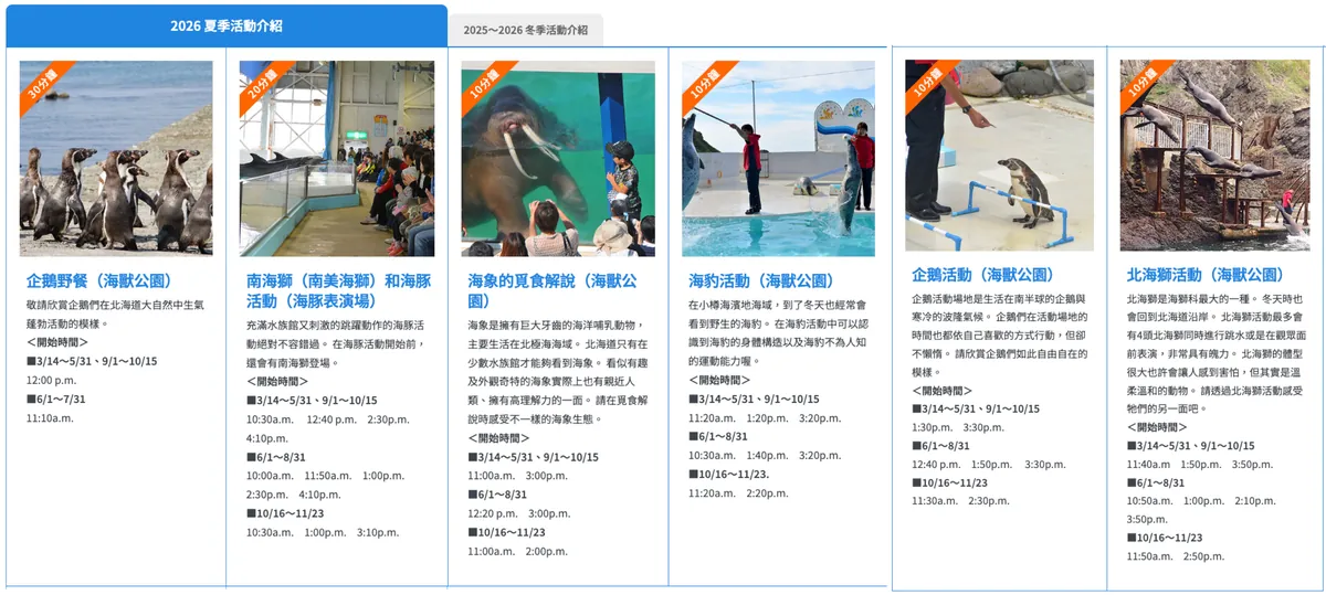 - 特色是戶外港口圈養、有很多展演跟冬季會有企鵝走路巡迴