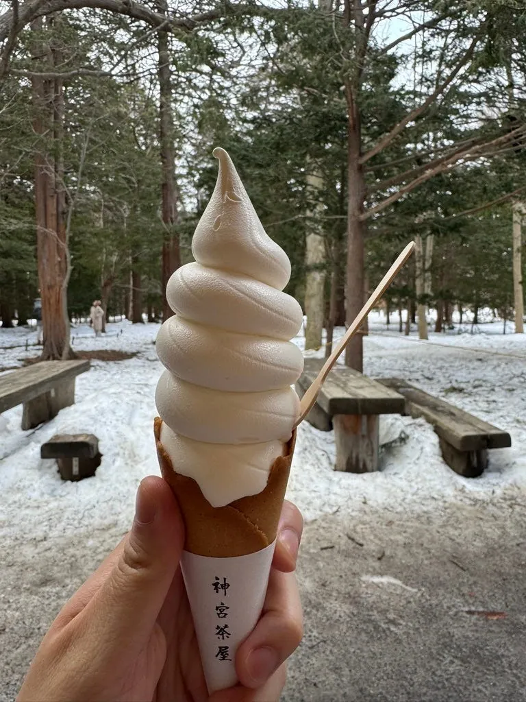 繼續走路上會經過神宮茶屋,先去吃個北海道牛奶冰淇淋。