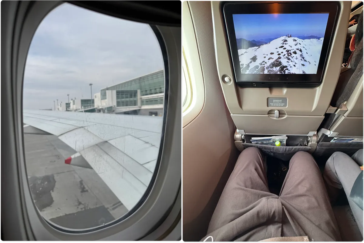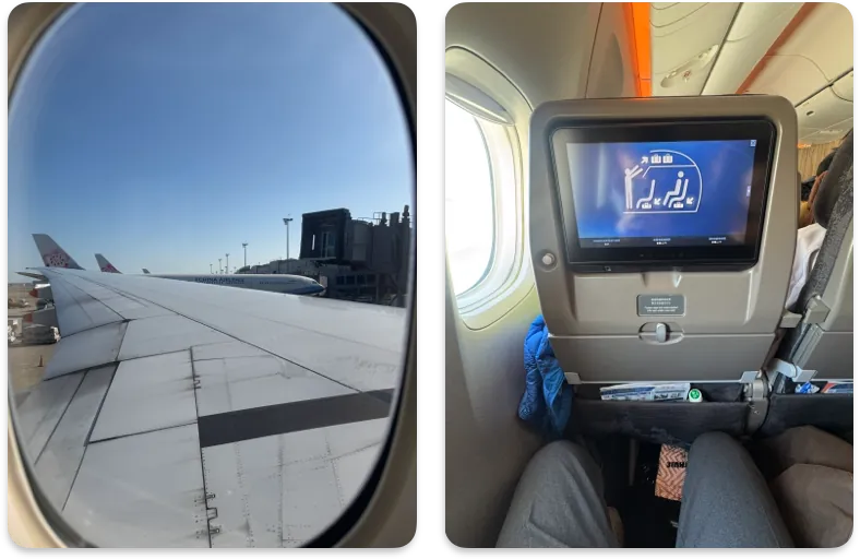 跟來時候一樣是新的空客飛機,位置大、娛樂設施新。