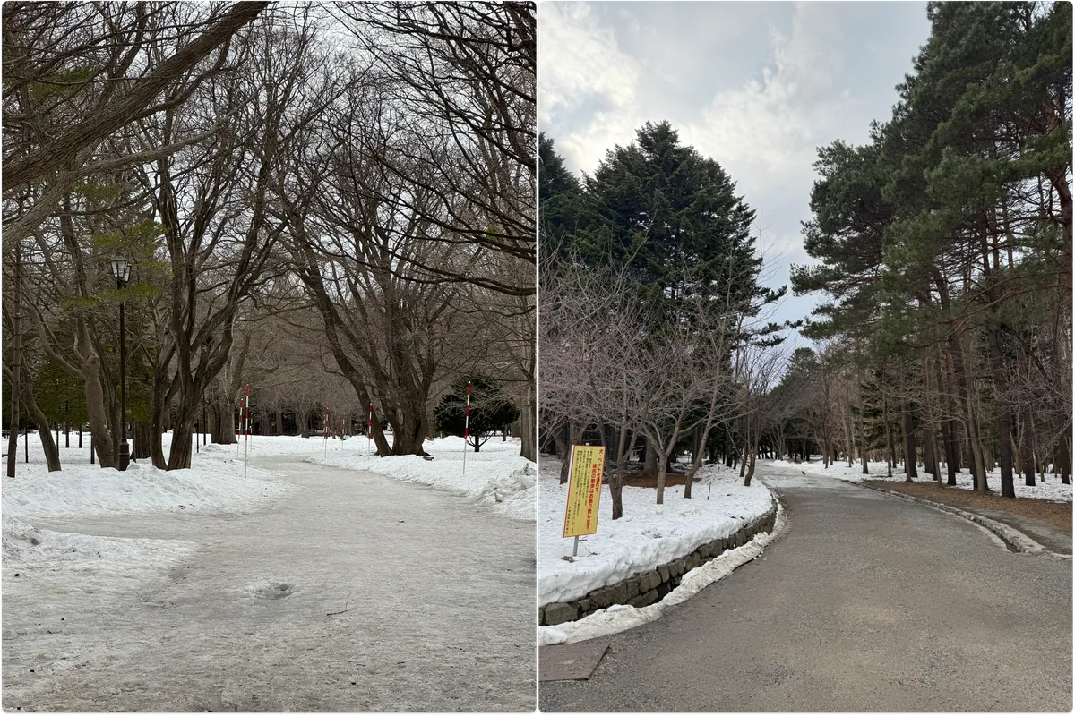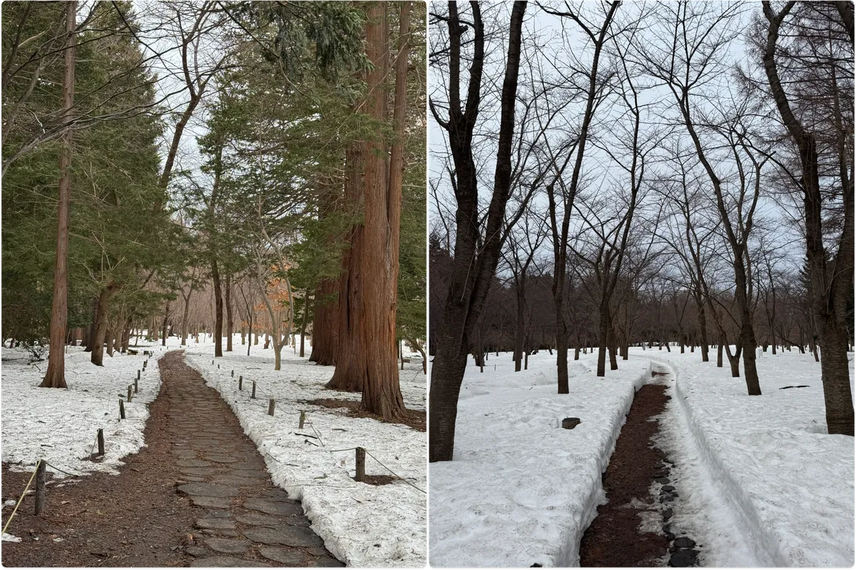 先穿過圓山公園(這裡還有很多積雪),就能看到神宮鳥居入口了: