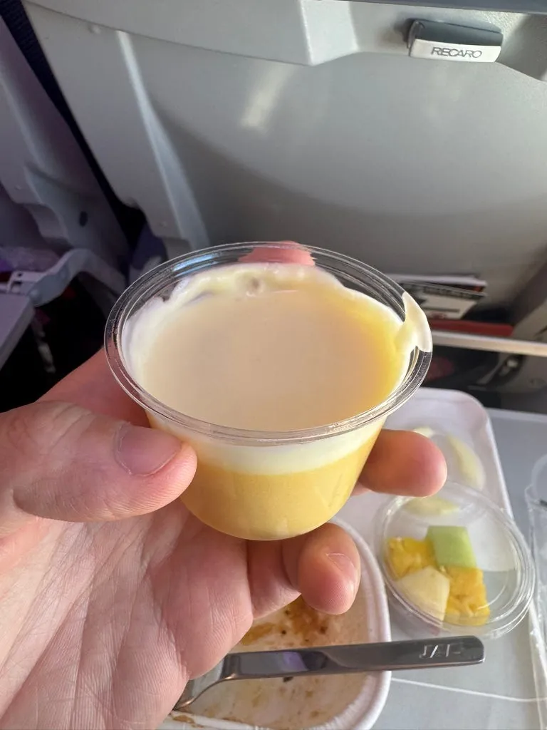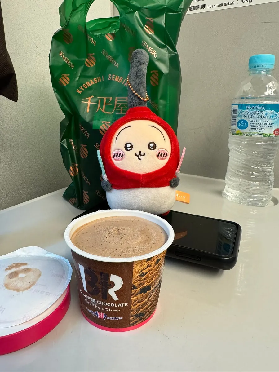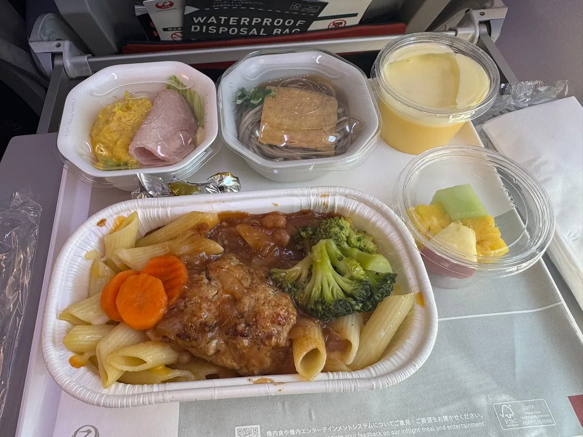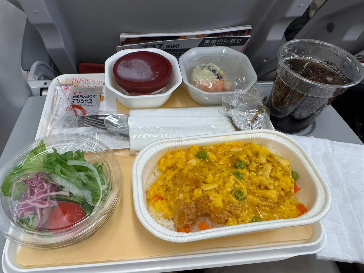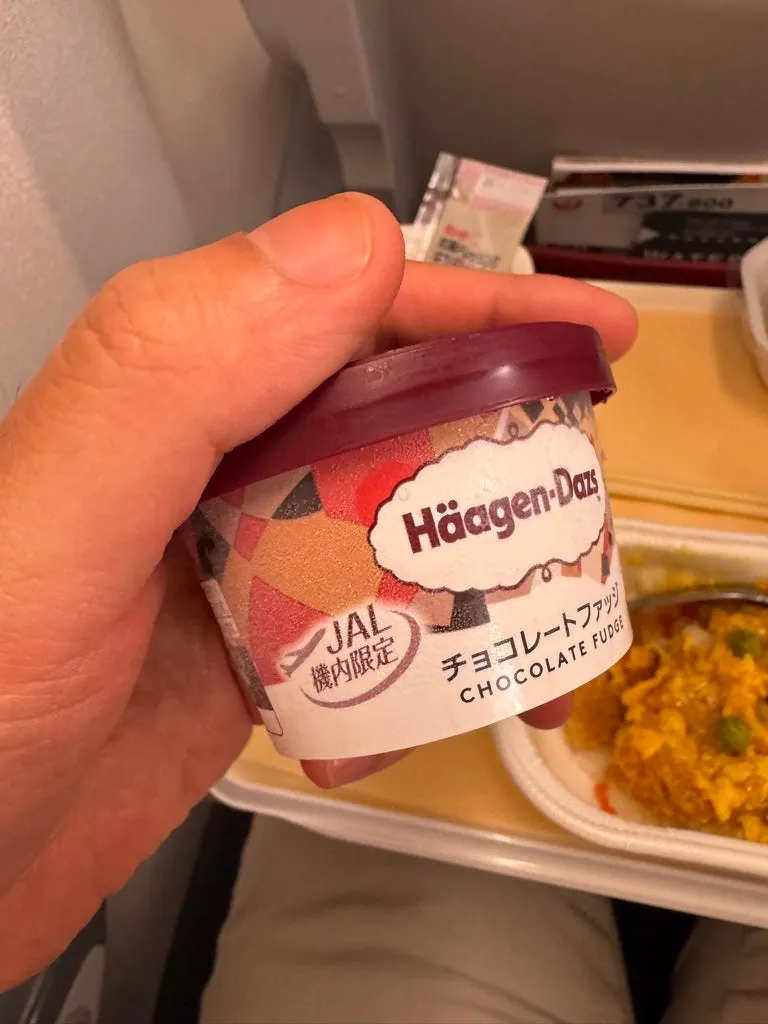 飞机餐一样很优秀,是咖喱猪排饭跟甜点哈根达斯。