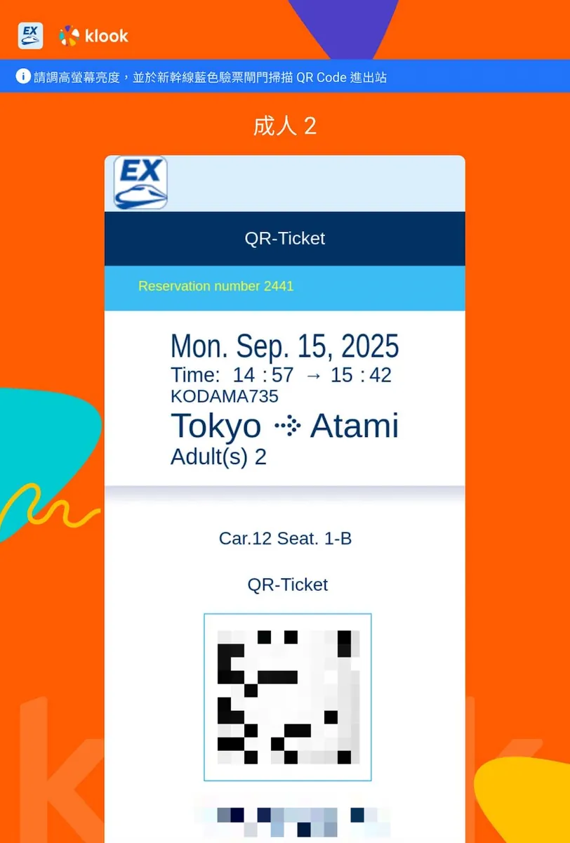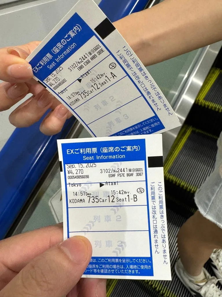 - 东京 14:57 -> 热海 15:42 — こだま Kodama 735