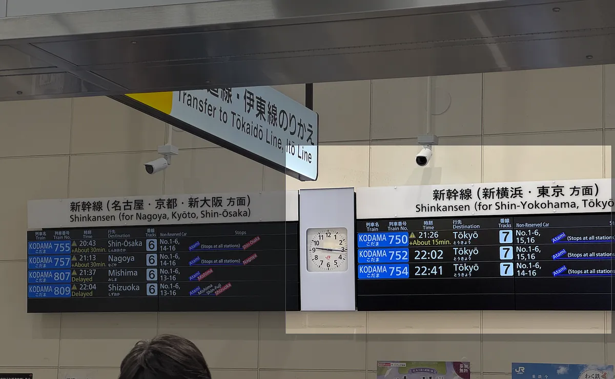 - 热海 22:02 -> 东京 22:48 — こだま Kodama 752
