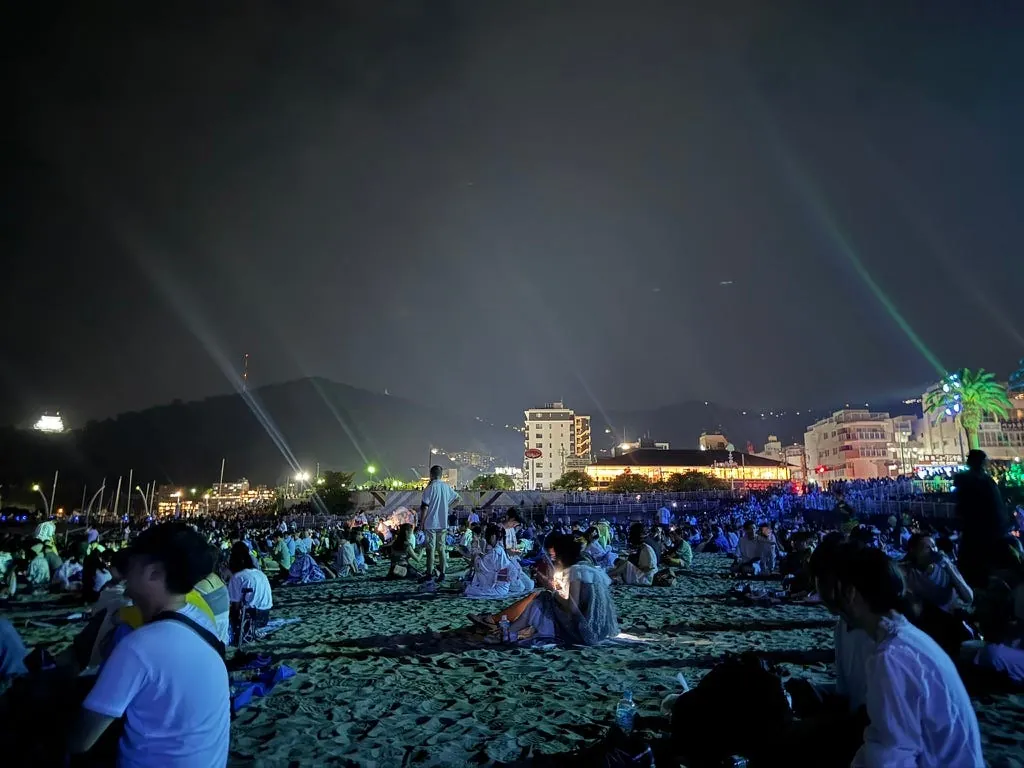 在海滩释放、免费入场、无付费席,从 JR 热海站走路会到, 保险起见只需要提前预约好来回的 JR 或热海的住宿就好 。