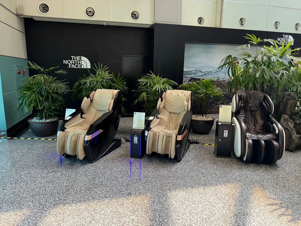 在机场乱逛等登机,在 D1 The North Face 旁有两排免费的按摩椅可以体验(跟附近店家拿免费代币即可使用)。