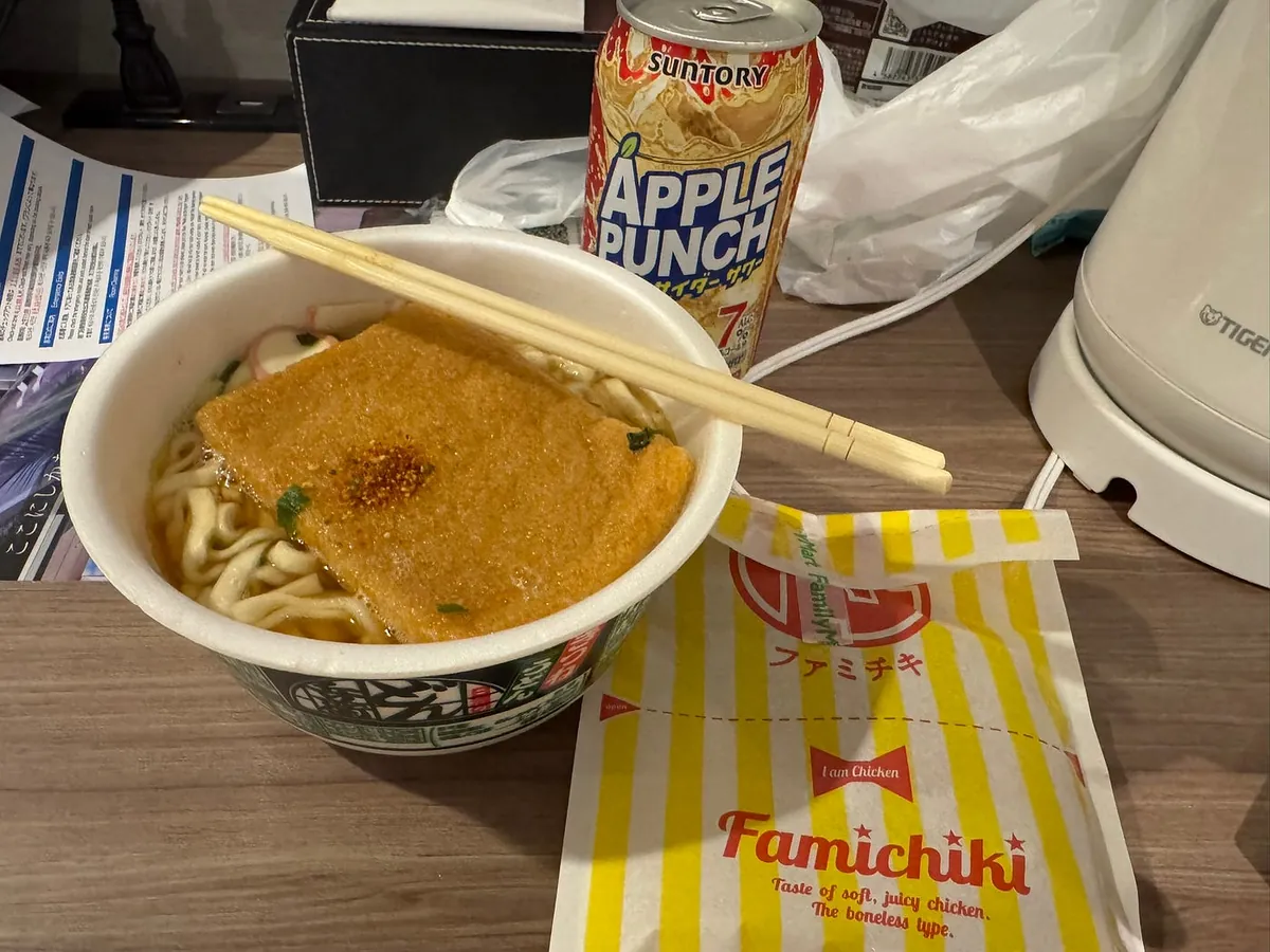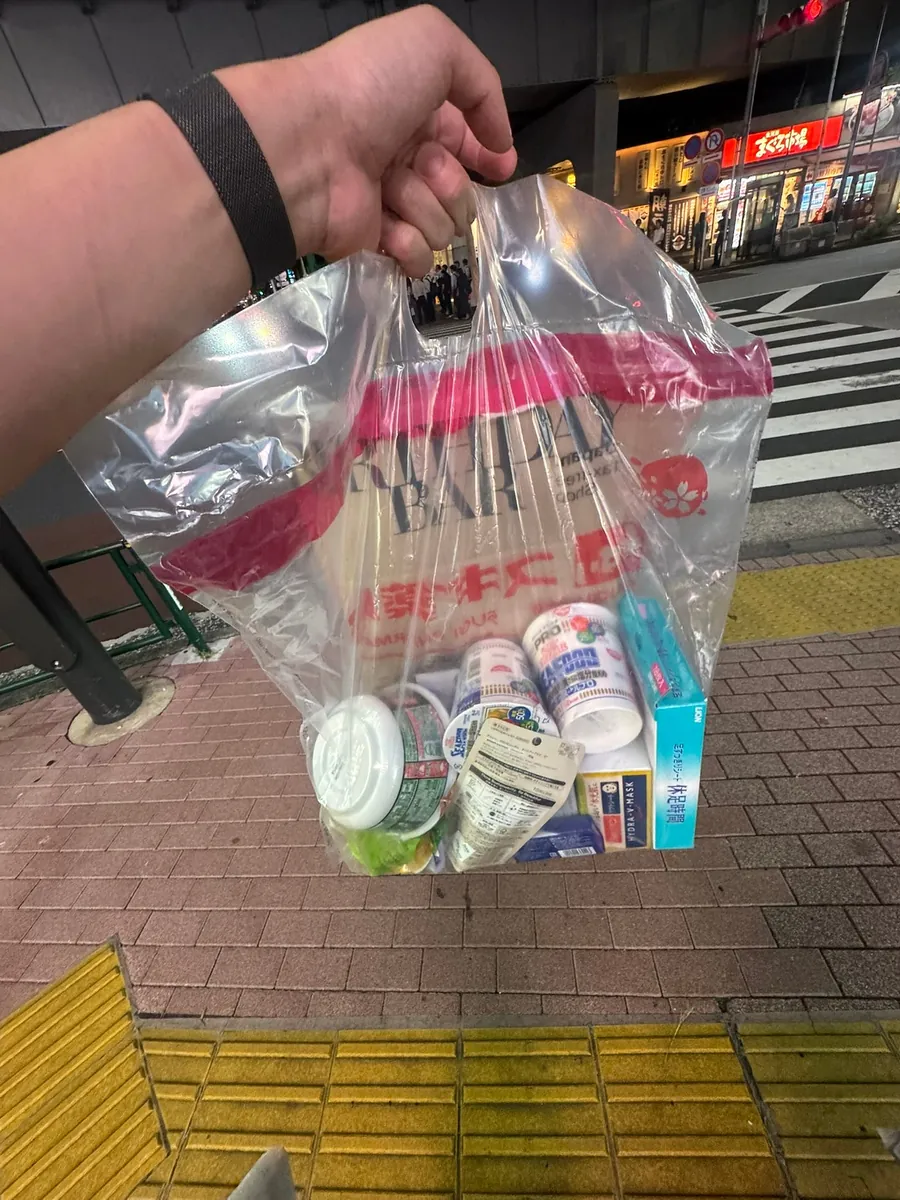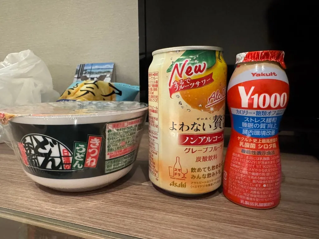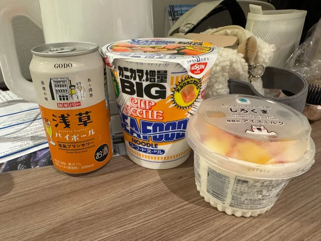 刚在路上又去超商买了一些吃的喝的补充体力。
