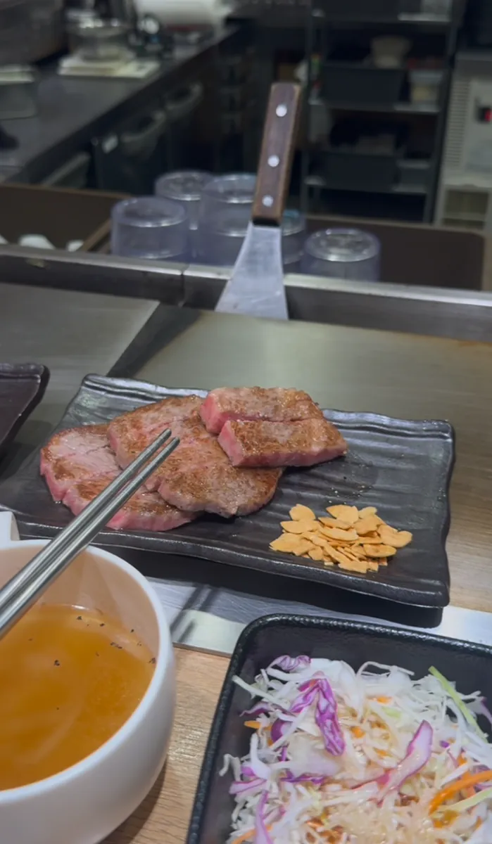 上次是吃汉堡排+牛排套餐 _, 一样只要记得两双筷子,铁筷负责煎、木筷负责吃。*
