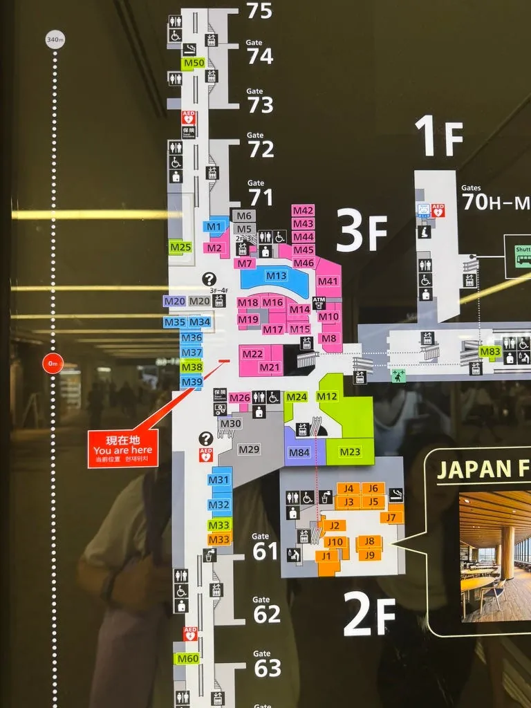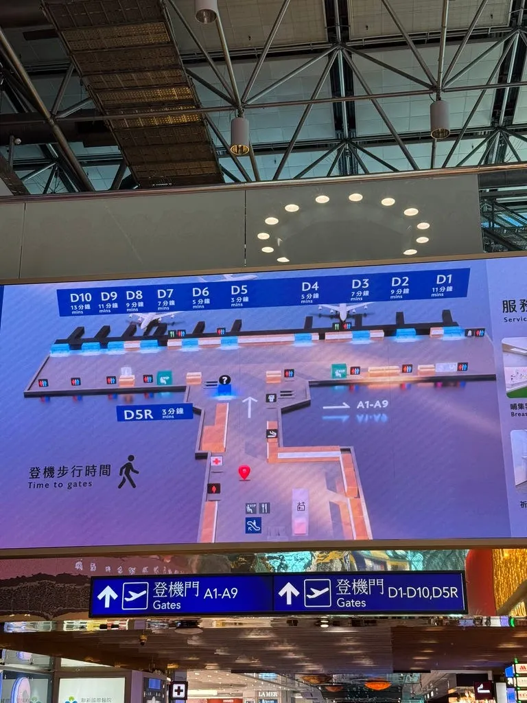 一早人蛮多的,大约 8:20 左右完成安检出境,先去二楼吃个摩斯当早餐;分配到的登机门也是最远的 D1。