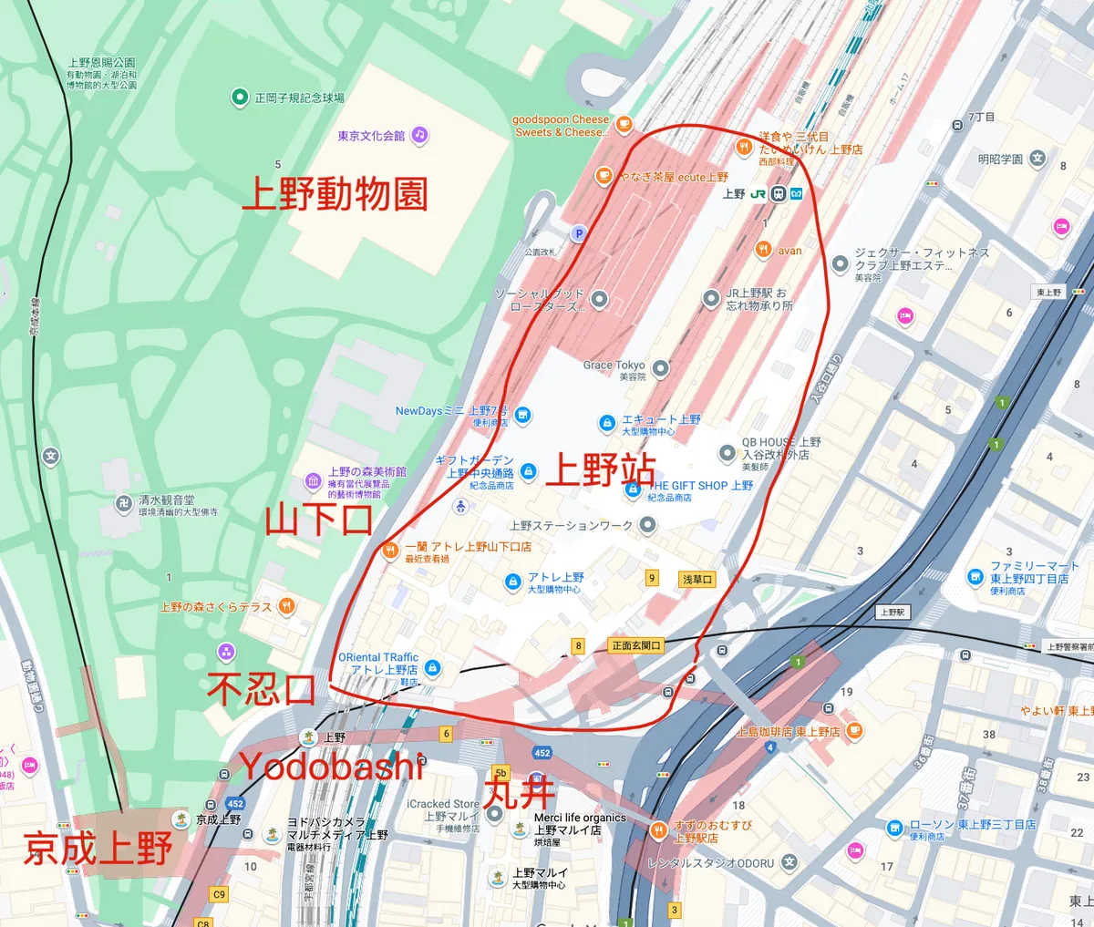 从不忍口出来过马路就是 Skyliner 京成上野了。(不确定有没有其他更近的出口,怕迷路就没乱走了)