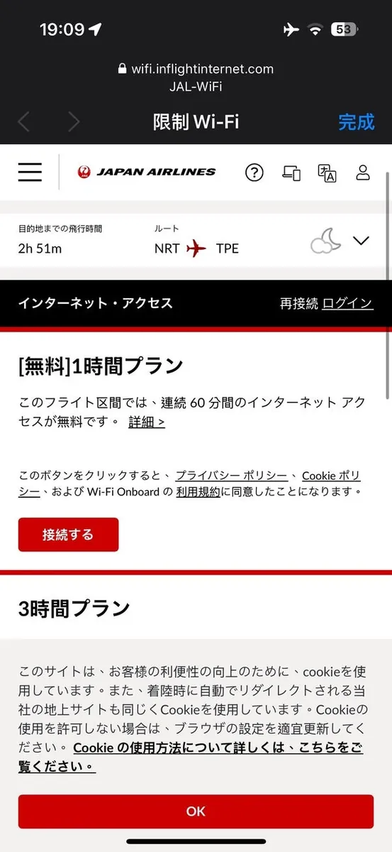 无意间发现机上有提供免费一小时的 WiFi 上网。