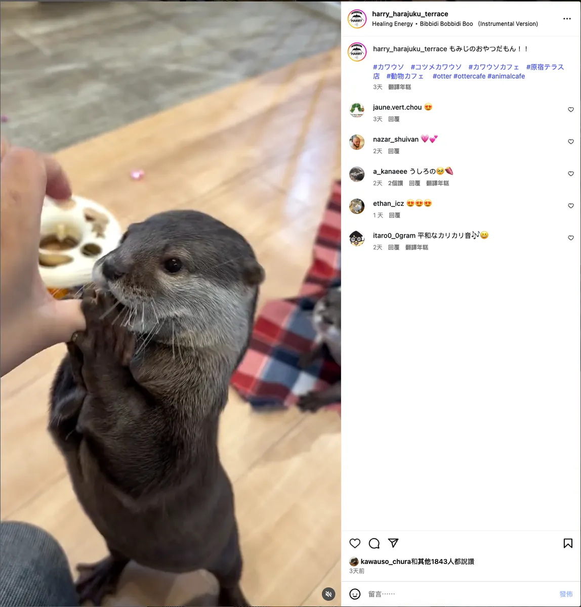 之前在 ig 被烧到的可以跟水獭互动的 咖啡厅 。