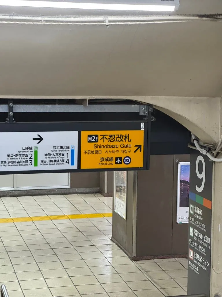 路线有点奇妙,需要先下到月台再从另一个出口上去,出来才会是不忍改口。