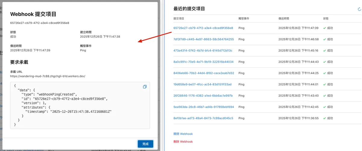 - 點擊「建立 Webhook」按鈕