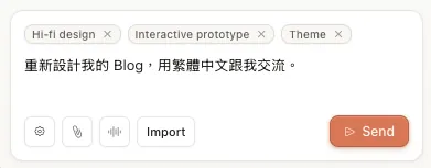 選擇完成後,輸入 Prompt 請 Claude Design 幫你設計頁面: