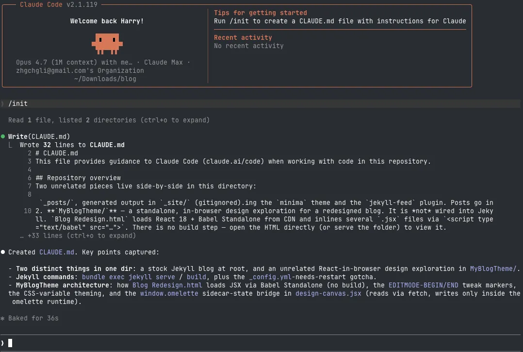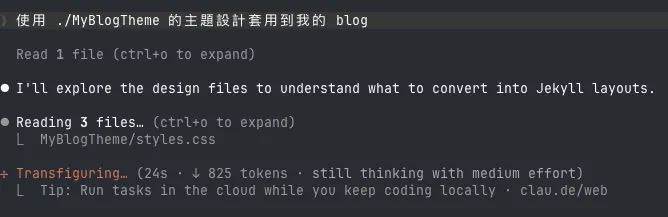 記得先在 Jekyll Blog 目錄下執行一次 /init ,讓 AI 知道這是 Jekyll Blog 架構。