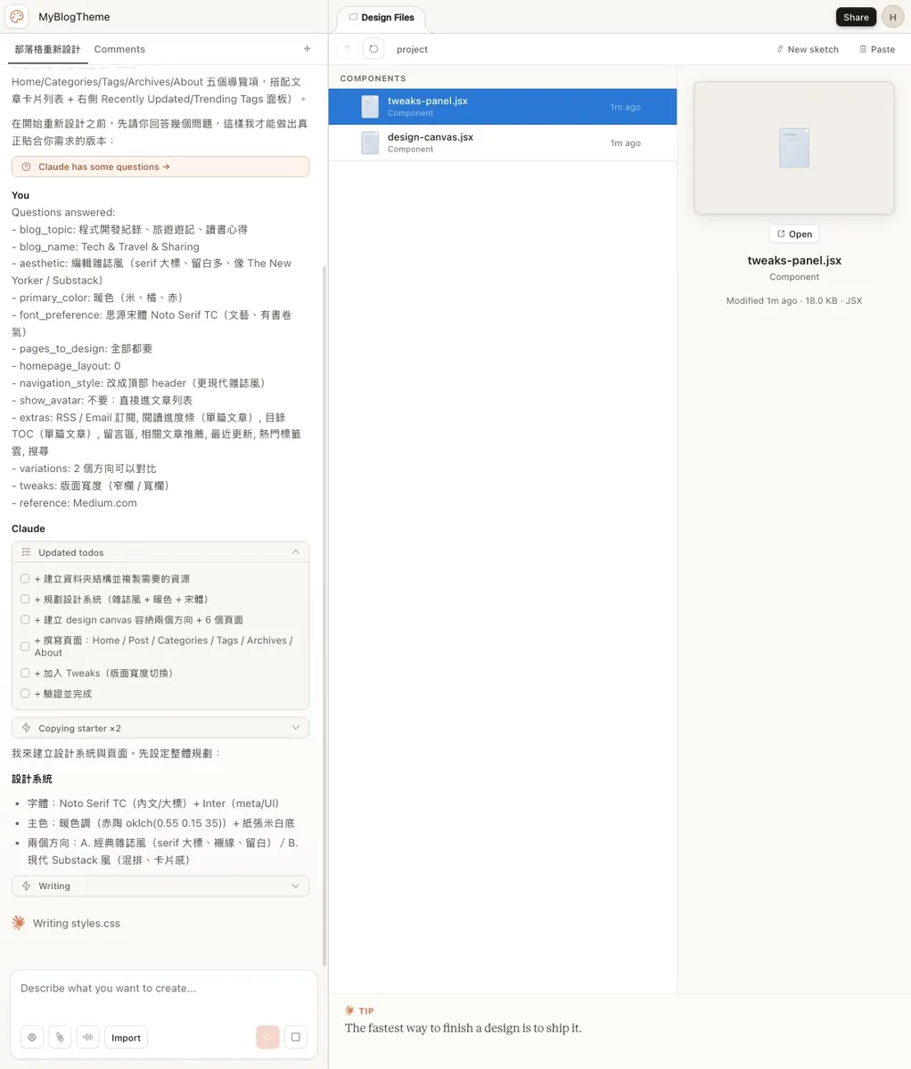 一個週末午後 + Claude Design + Claude Code = 打造屬於你自己風格的 Blog