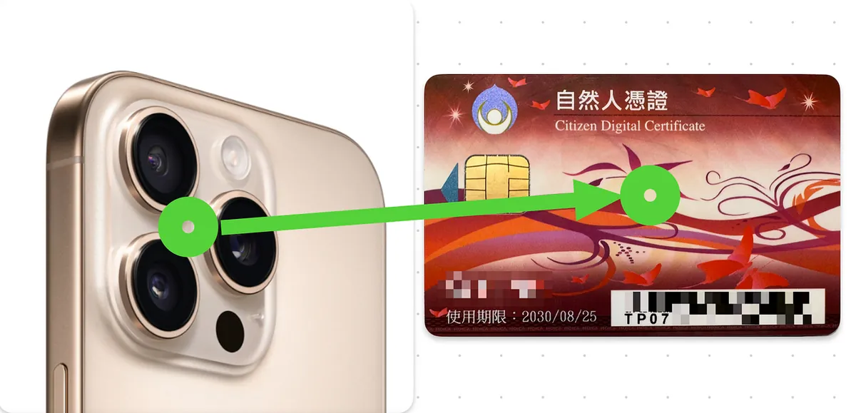 - iPhone:先把卡片靠近手機背面上方/鏡頭附近,緩慢移動找感應點