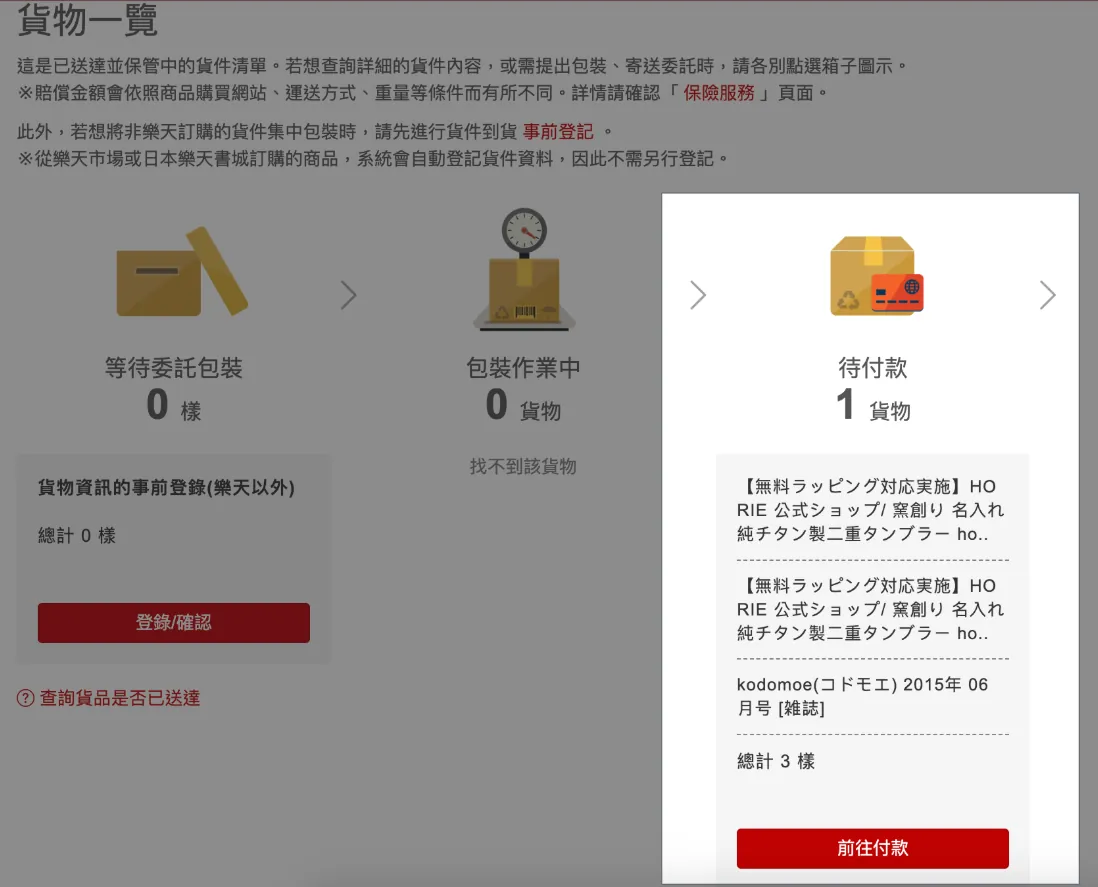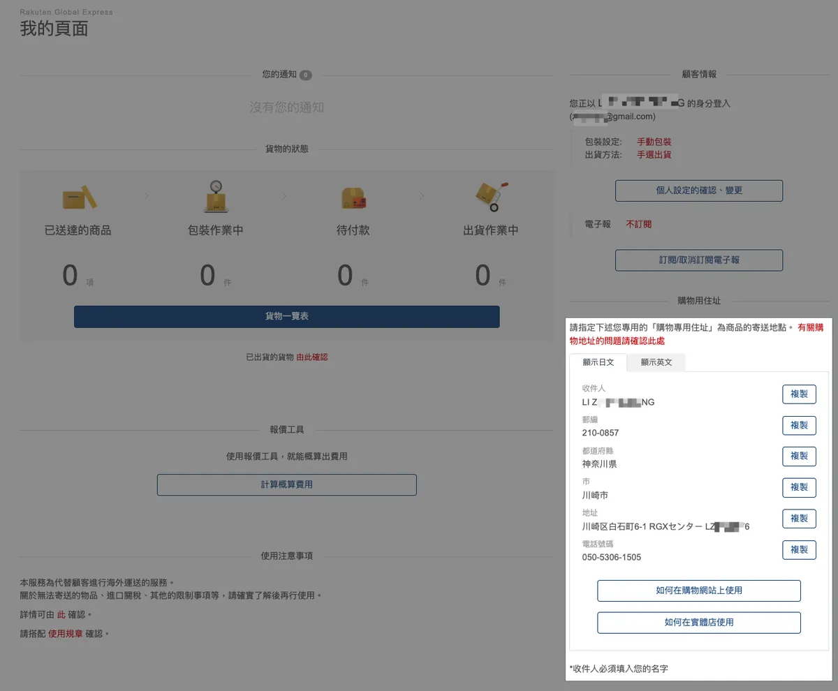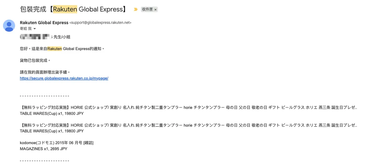 Up to this point, registration on the Japan Rakuten site, using Rakuten consolidation service, placing orders, shipping, sending back to Taiwan, and EZWay are all completed. Now just wait for the goods to arrive!