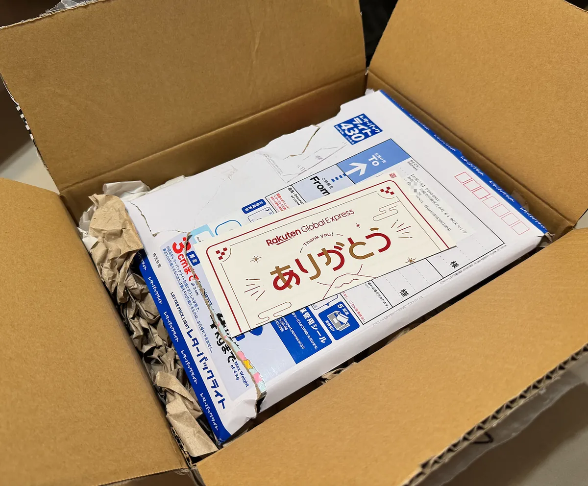 Because I needed engraving, it took 7–10 days to produce. Additionally, I bought magazines, which added waiting time for the magazines to arrive at Rakuten Consolidation.