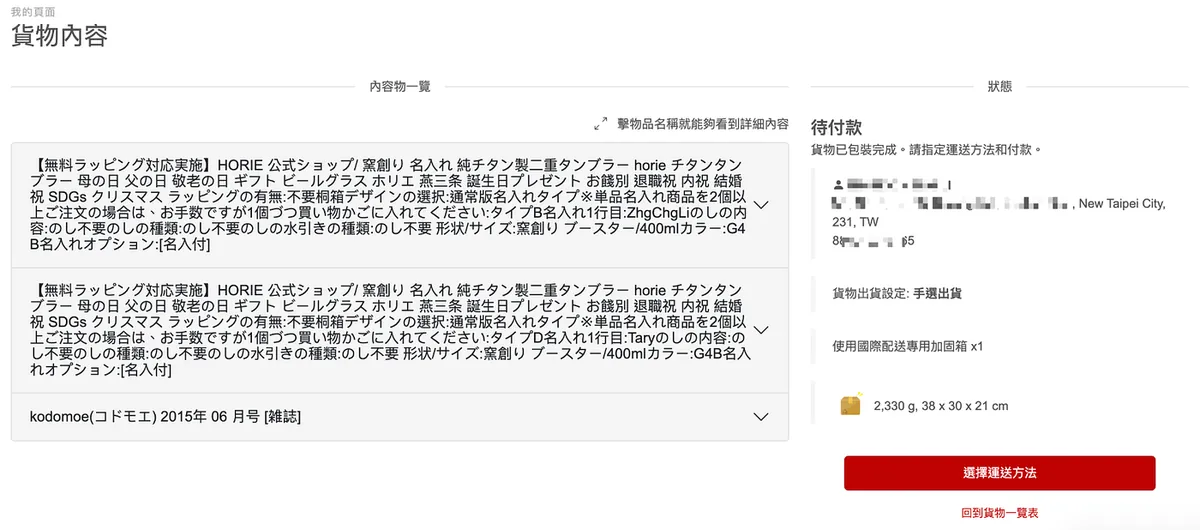 This time, besides buying the HORIE titanium cup, I also purchased a magazine from Amazon JP in Japan, planning to ship them together via consolidated shipping to Taiwan.