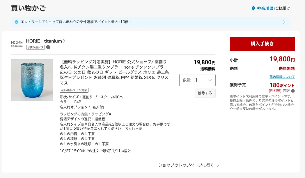 Rakuten Shopping — Horie Titanium Cup Order Tutorial