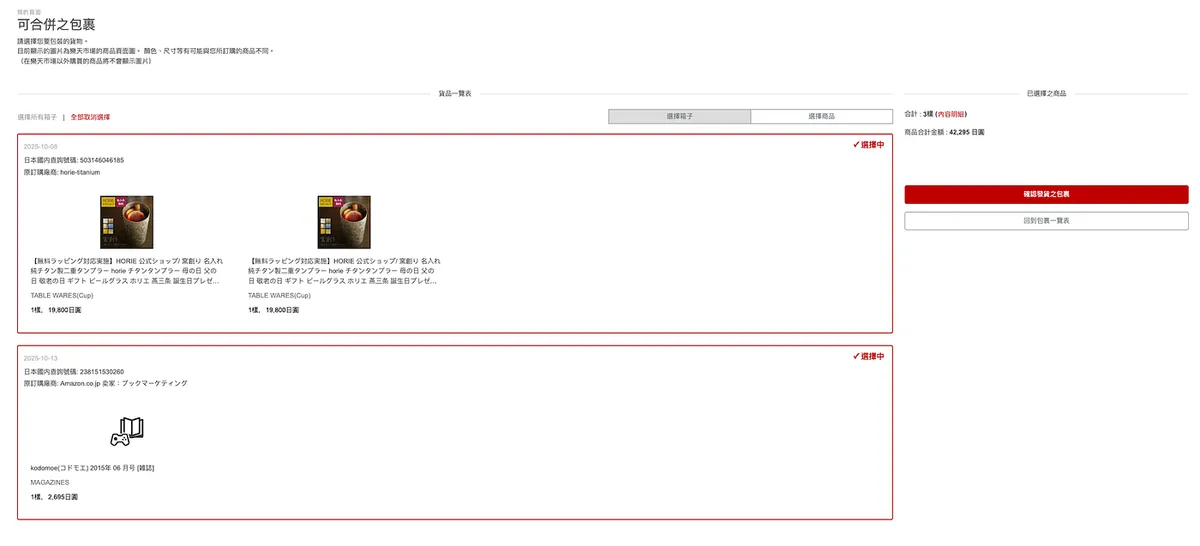 Rakuten Global Express offers free storage of goods for up to 30 days. Once all items have arrived, you can request packaging and shipment.