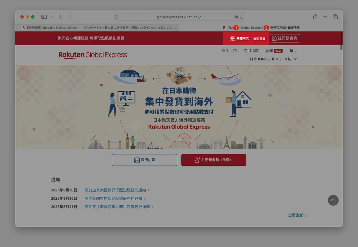 After registering with Rakuten, you will be automatically logged in by default when you visit Rakuten Global Express.