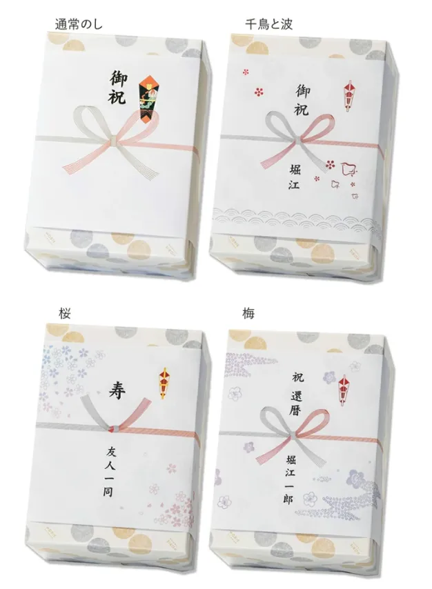 Types of Noshi: Styles of congratulatory labels, as shown in the image below. If not needed, select “No Noshi.”