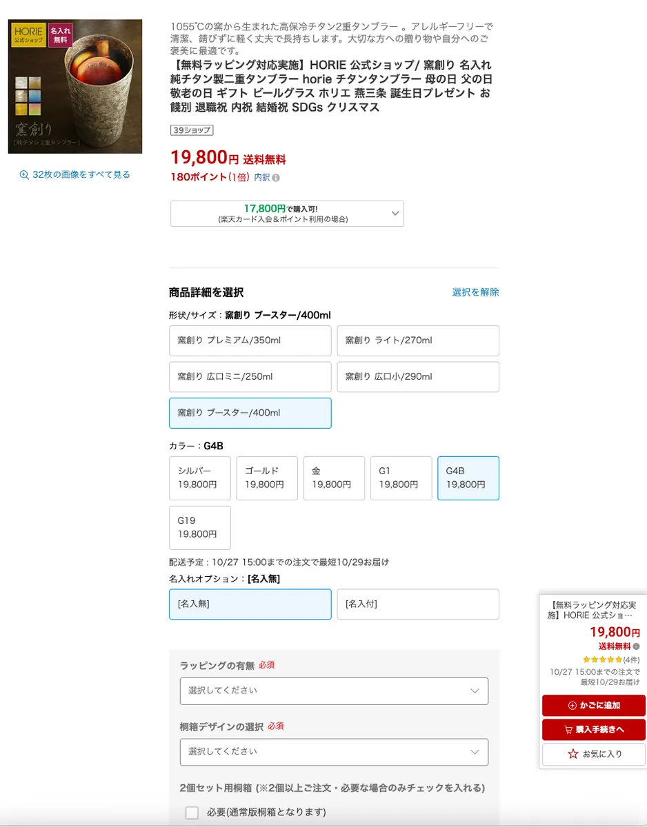 Rakuten Shopping — Horie Titanium Cup Order Tutorial
